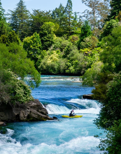 The Waikato River winds through dramatic gorges and rolling farmland, culminating in a tranquil yet captivating excursion. Along the river you will find another of the most beautiful places in New Zealand, Huka Falls.